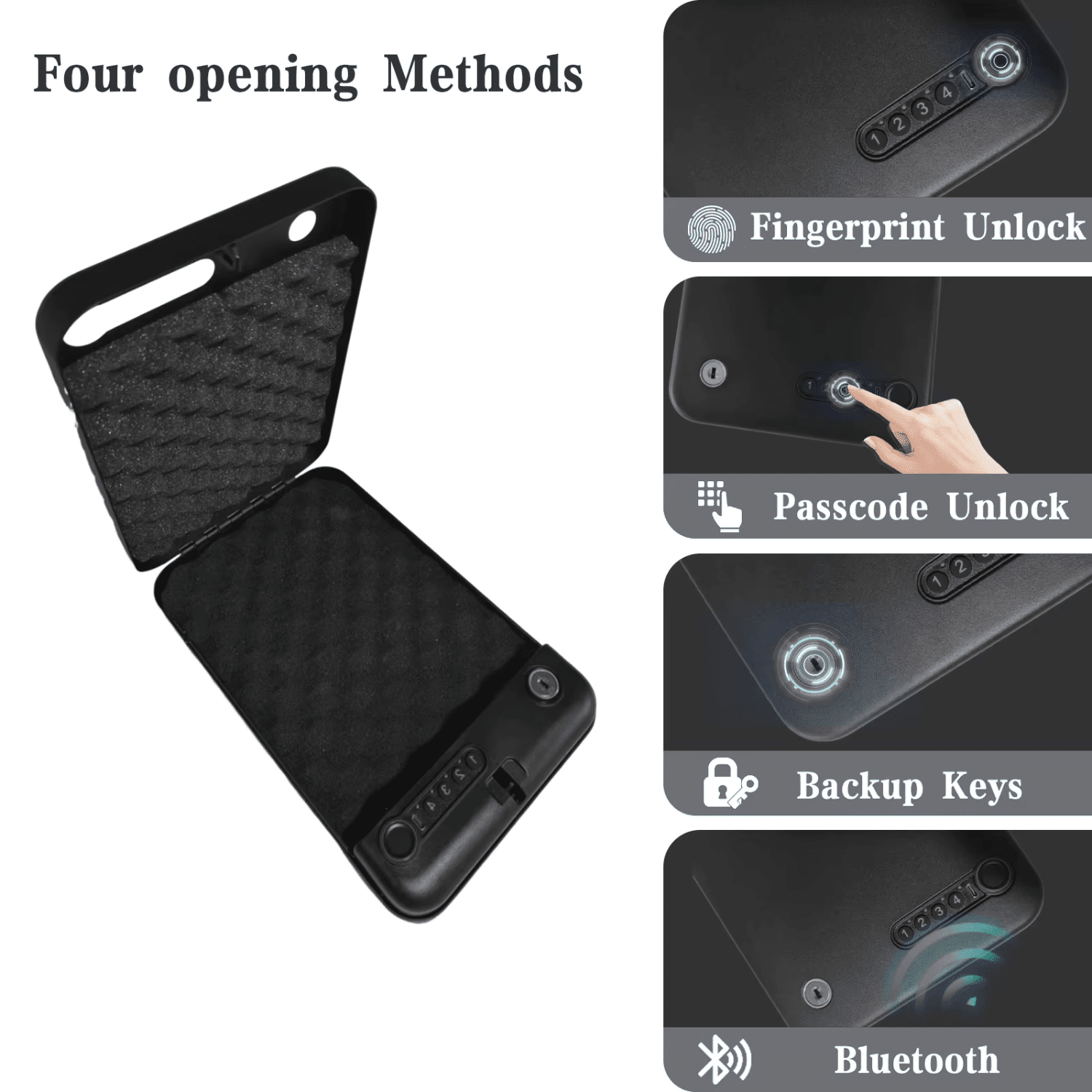 Keep your valuables safe wherever you go with the FocusOutdoor® Portable Biometric Steel Car Glove Box Safe. Built from durable steel, this compact safe combines biometric fingerprint access and keypad PIN entry for ultimate convenience and security. Whether at home, in your vehicle, or office, it offers reliable protection for keys, cash, documents, and other essentials.