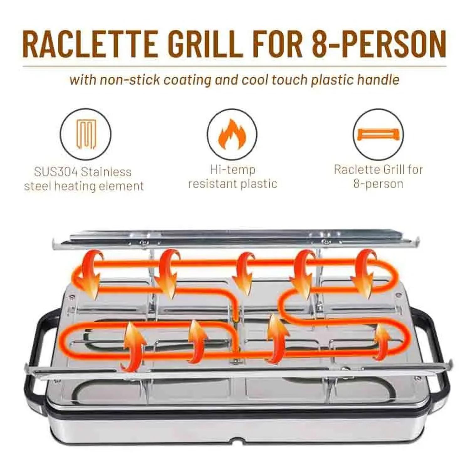 FocusOutdoor® Raclette Electric Table Grill with 8 Non-Stick Pans